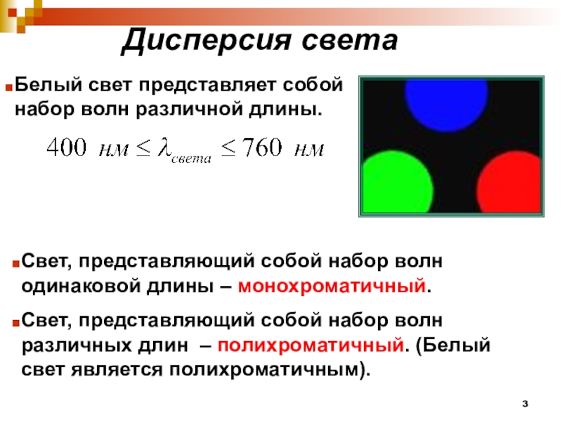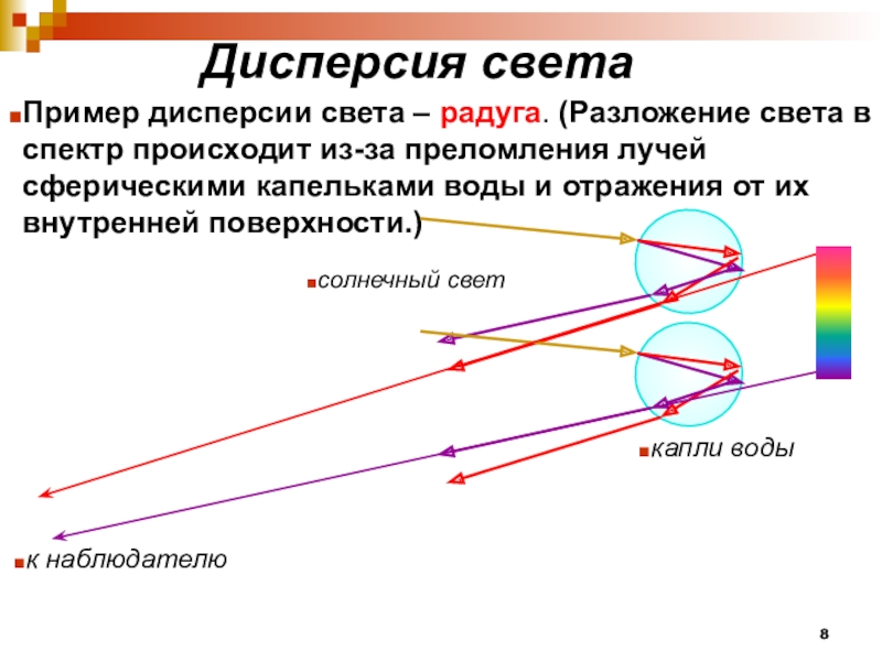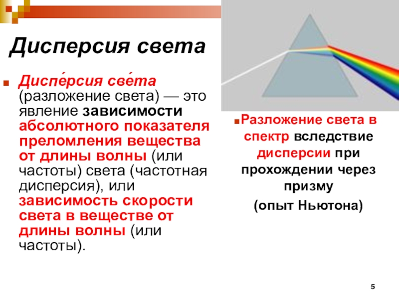Разложение света в спектр вследствие дисперсии при прохождении через призму