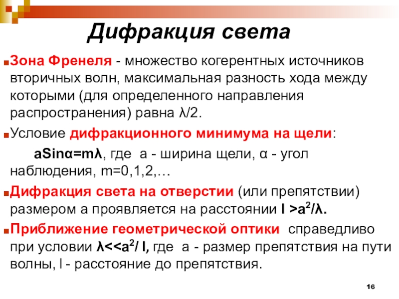 При одинаковом законе колебаний двух источников интерференционные максимумы наблюдаются в точках пространства, для которых геометрическая разность хода интерферирующих волн равна целому числу длин волн: