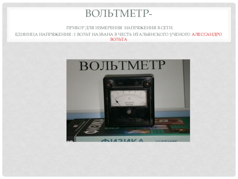 Слайд 8Вольтметр- прибор для измерения напряжения в сети. единица напряжения : 1 вольт