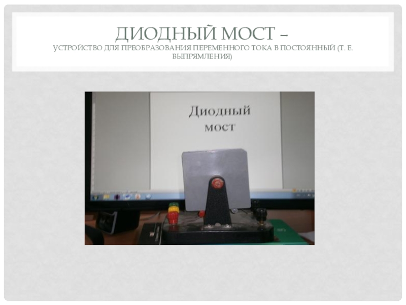 Слайд 4Диодный мост – устройство для преобразования переменного тока в постоянный (т.
