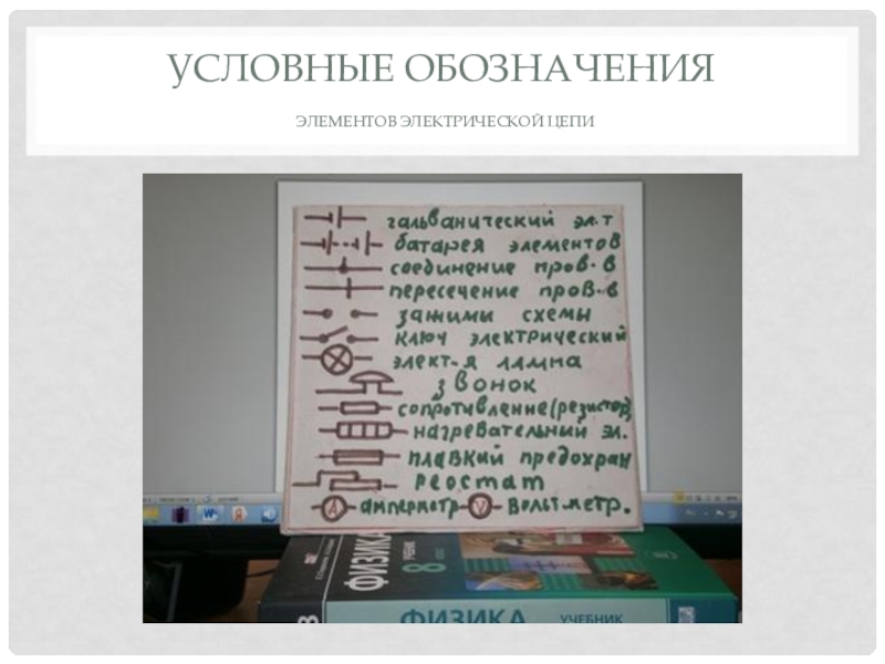 Условные обозначения  элементов электрической цепи