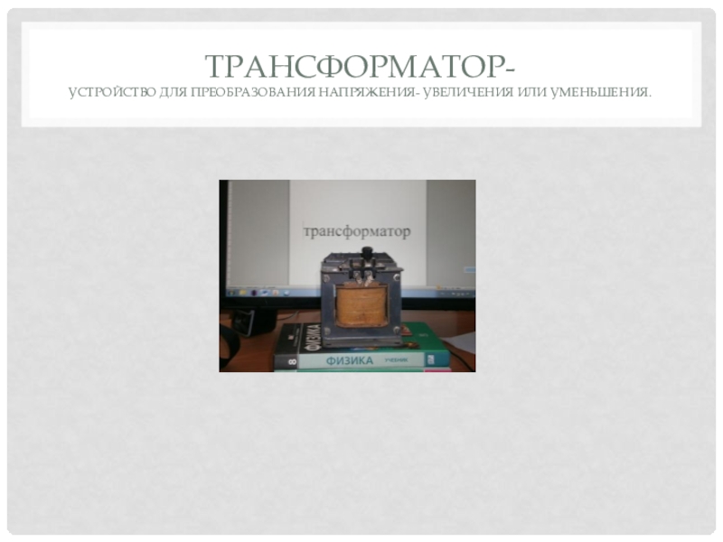 Слайд 3Трансформатор- устройство для преобразования напряжения- увеличения или уменьшения.
