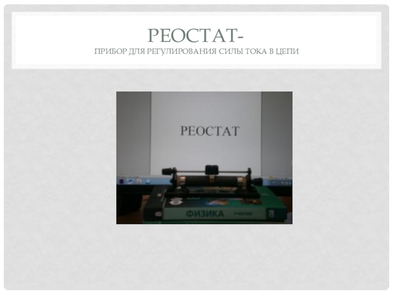 Слайд 9Реостат- прибор для регулирования силы тока в цепи