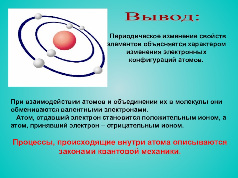 Процессы, происходящие внутри атома описываются законами квантовой механики.