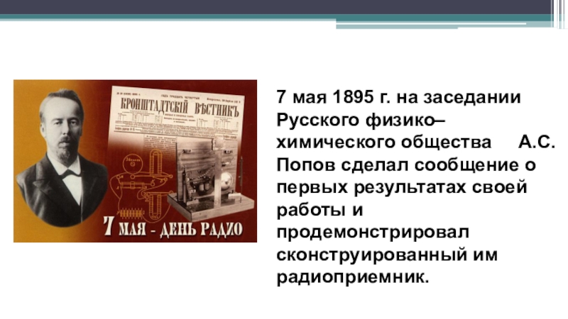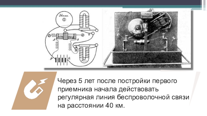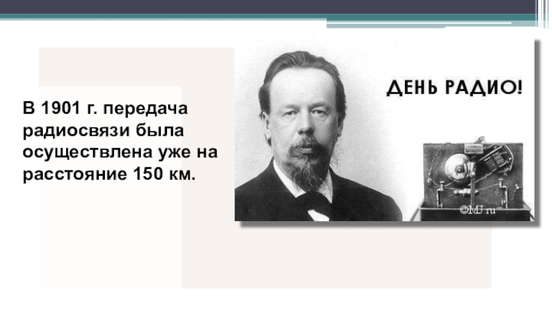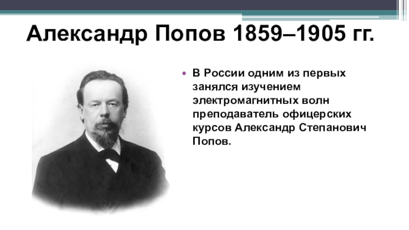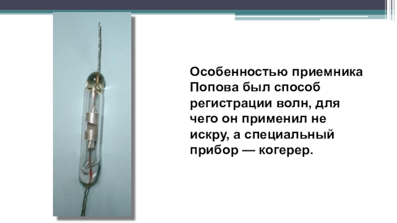 1890г.-Э. Бранли установил, что электрическое сопротивление снижается под действием ЭМВ, был изобретен «когерер» -чувствительный детектор волн.