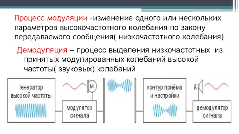 Демодуляция – процесс выделения низкочастотных из принятых модулированных колебаний высокой частоты( звуковых) колебаний