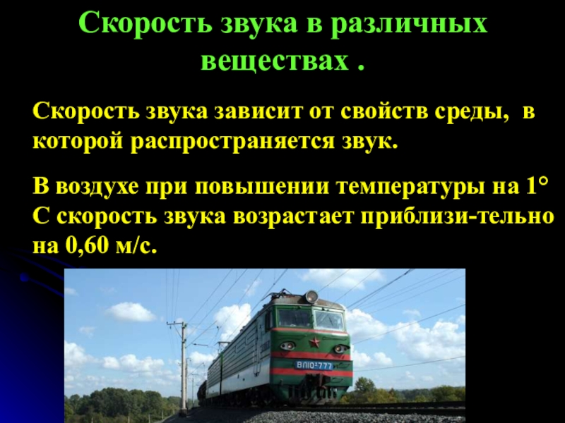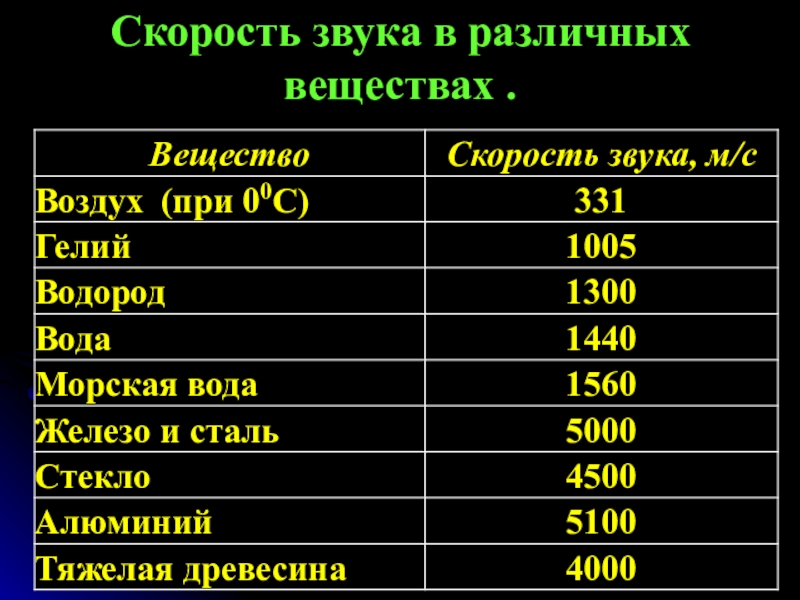 В воздухе при повышении температуры на 1°С скорость звука возрастает приблизи-тельно на 0,60 м/с.