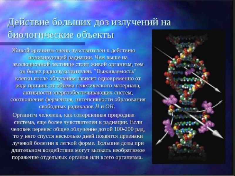 Презентация, доклад по физике на тему Биологическое действие радиоактивных излучений (10 класс)