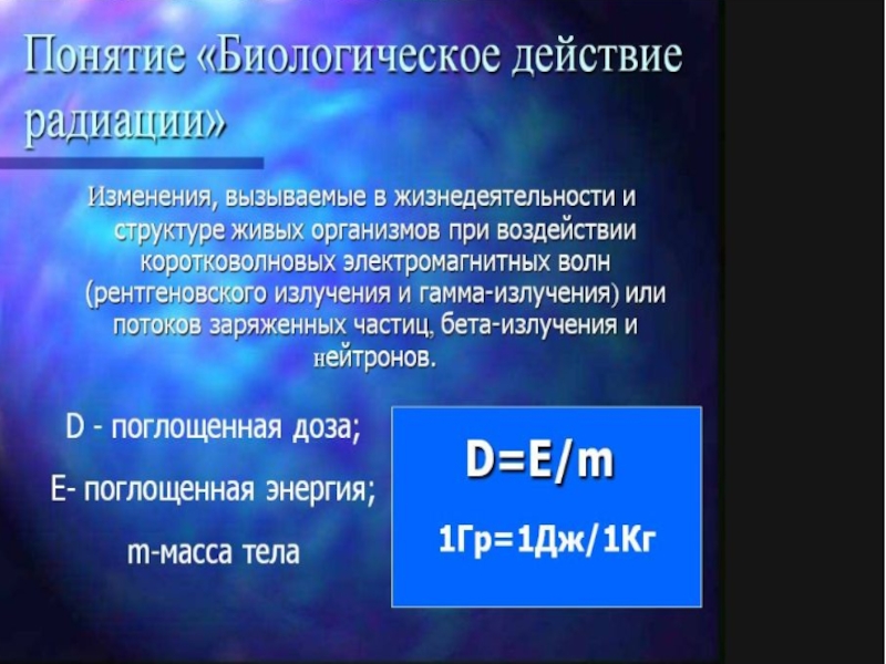 Презентация по физике на тему Биологическое действие радиоактивных излучений (10 класс) Физика