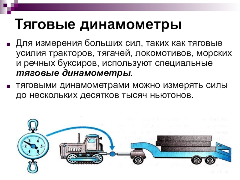 тяговыми динамометрами можно измерять силы до нескольких десятков тысяч ньютонов.