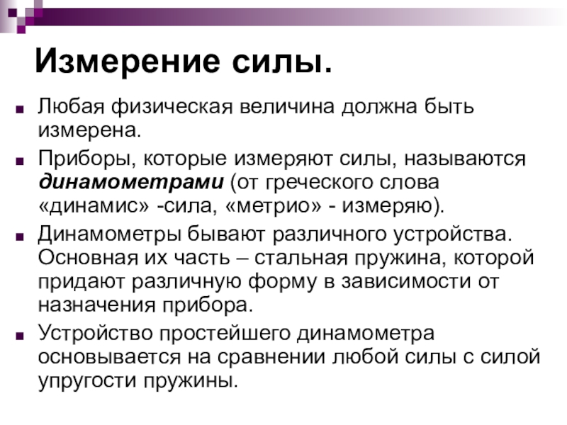 динамометрами (от греческого слова «динамис» -сила, «метрио» - измеряю).