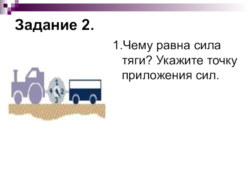 1.Чему равна сила тяги? Укажите точку приложения сил.