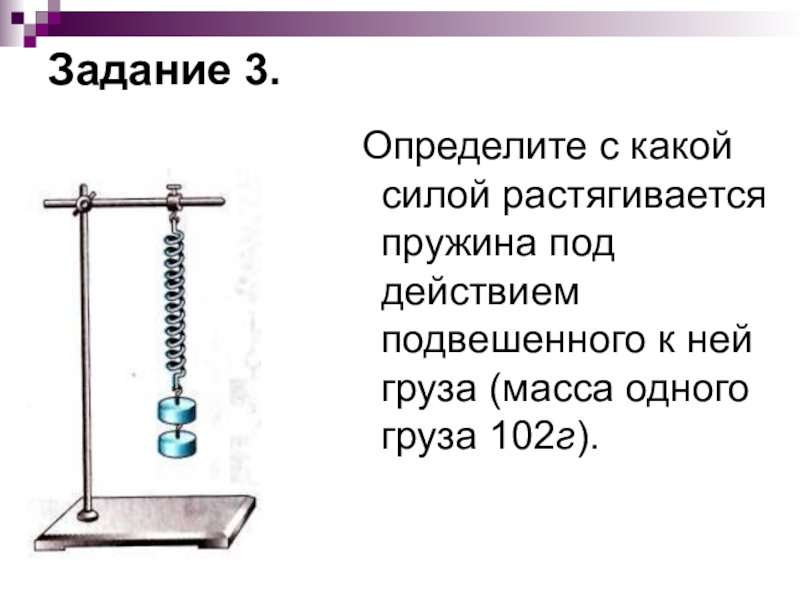 Приборы и материалы: динамометр, шкала которого закрыта, набор грузов массой по 102г, штатив с муфтой, лапкой и кольцом.