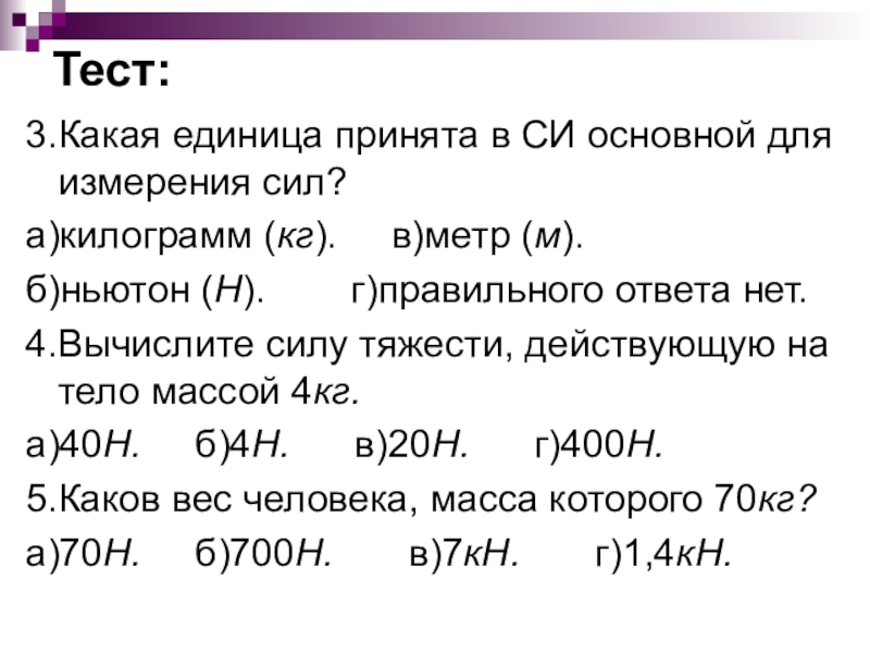 3.Какая единица принята в СИ основной для измерения сил?