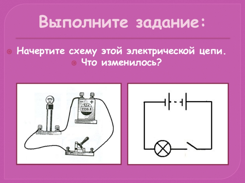 Выполните задание:Начертите схему этой электрической цепи.Что изменилось?