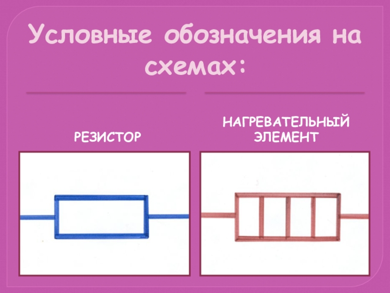 Условные обозначения на схемах:РЕЗИСТОРНАГРЕВАТЕЛЬНЫЙ ЭЛЕМЕНТ