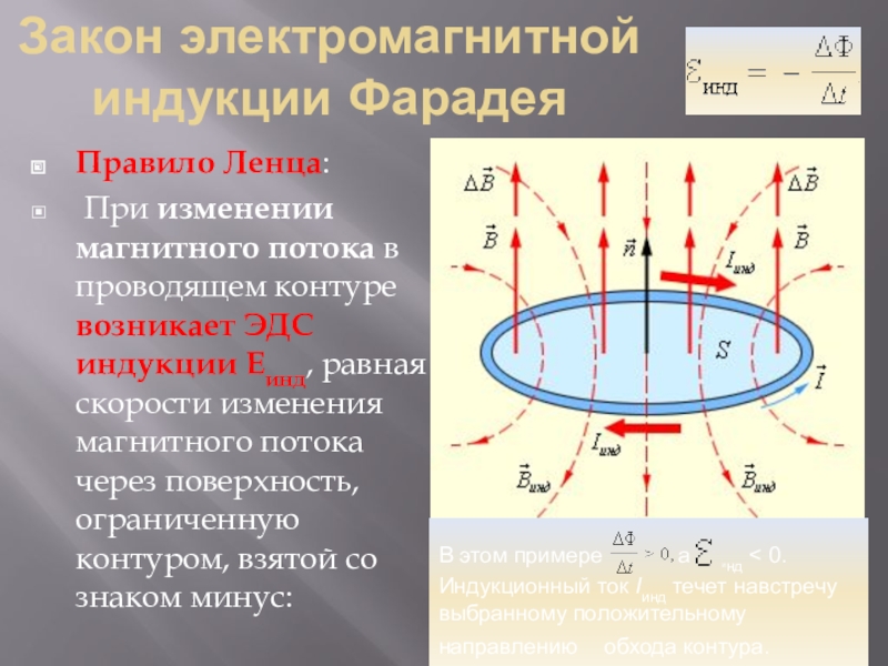 В этом примере а инд < 0. Индукционный ток Iинд течет навстречу выбранному положительному направлению обхода контура.