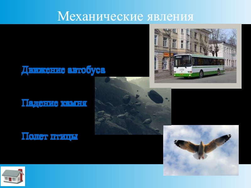 a. вода кипит b. плывёт бревно c. маятник часов колеблется
