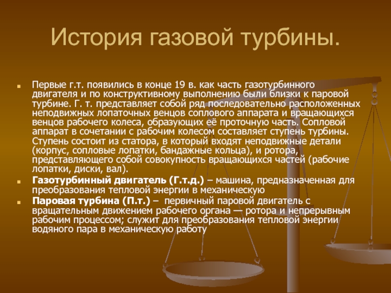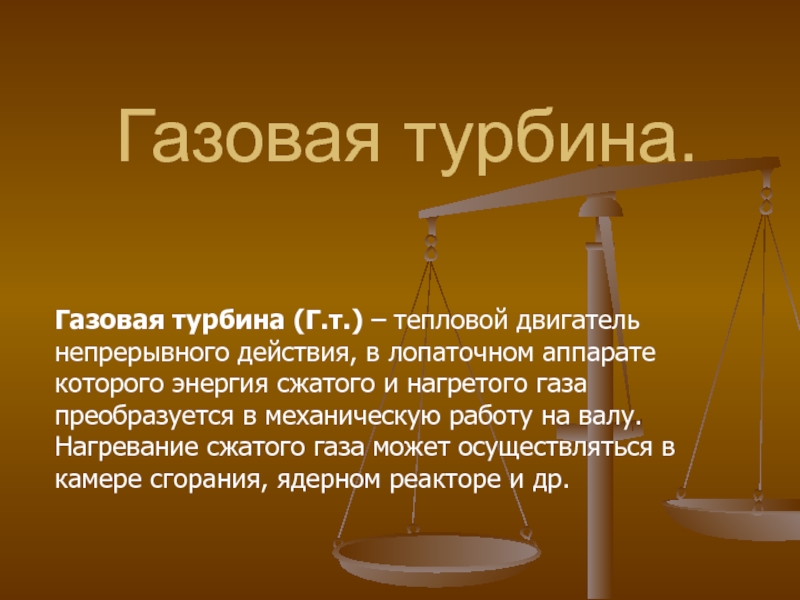 Газовая турбина (Г.т.) – тепловой двигатель непрерывного действия, в лопаточном