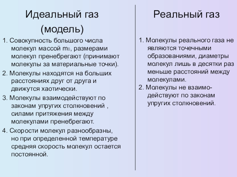 2. Молекулы не взаимо- действуют по законам упругих столкновений.