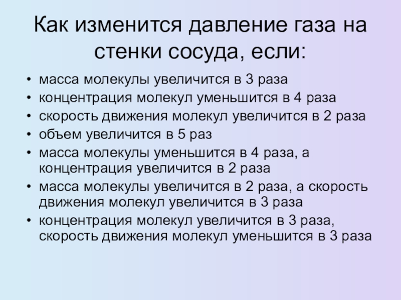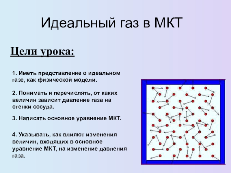 2. Понимать и перечислять, от каких величин зависит давление газа на стенки сосуда.