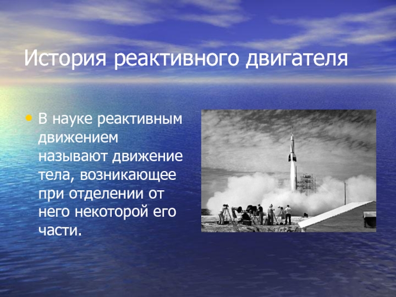 История реактивного двигателяВ науке реактивным движением называют движение тела, возникающее при отделении от него некоторой его части.