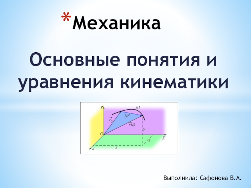 Основные понятия и уравнения кинематикиМеханикаВыполнила: Сафонова В.А.