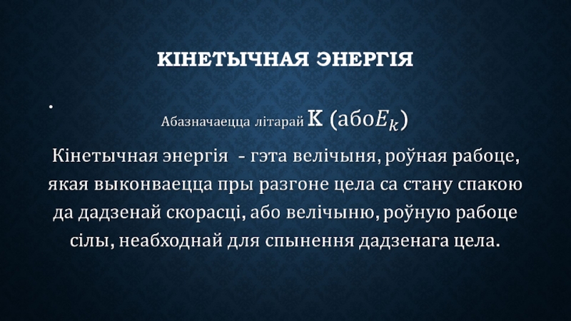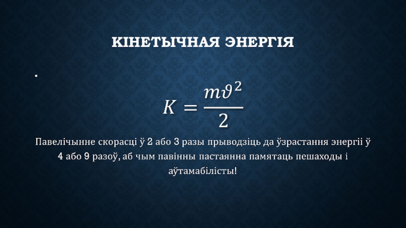 Слайд 1Кінетычная энергія