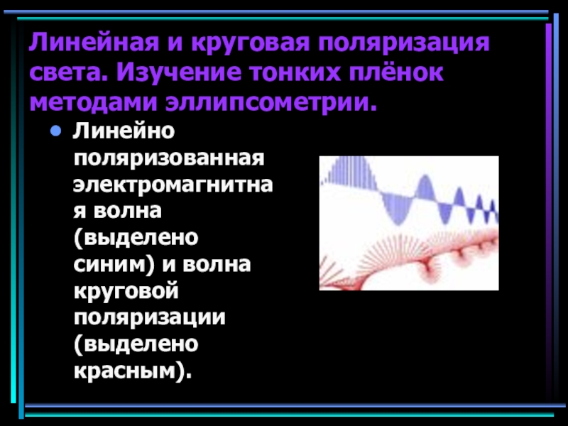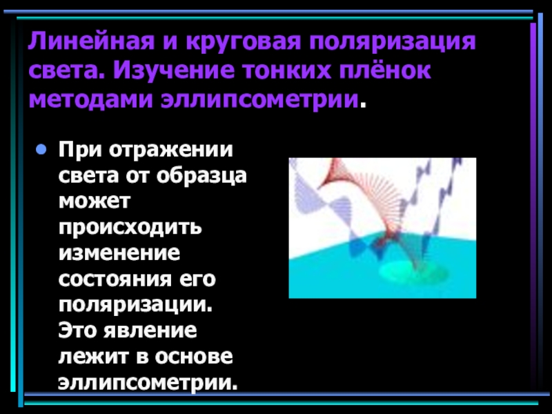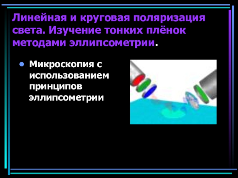 Слайд 9Линейная и круговая поляризация света. Изучение тонких плёнок методами эллипсометрии.