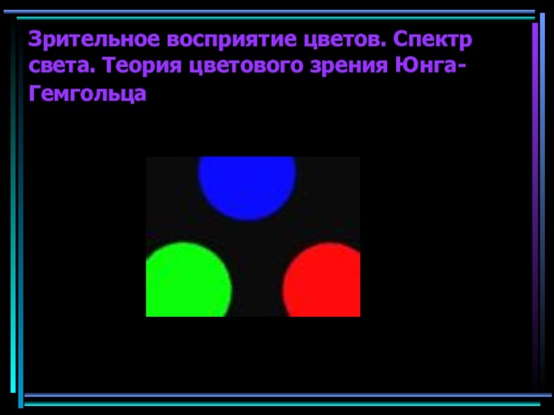 Слайд 18Зрительное восприятие цветов. Спектр света. Теория цветового зрения Юнга-Гемгольца