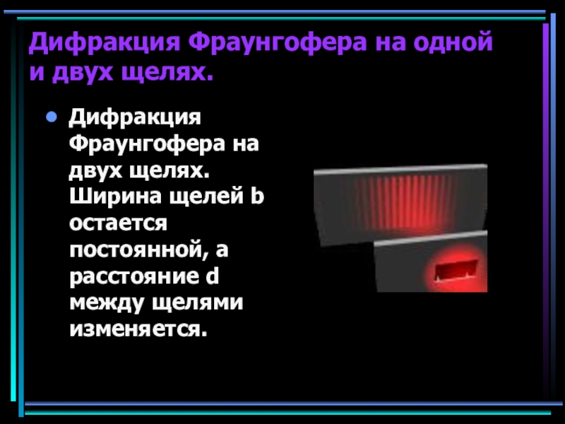 Слайд 14Дифракция Фраунгофера на одной и двух щелях.