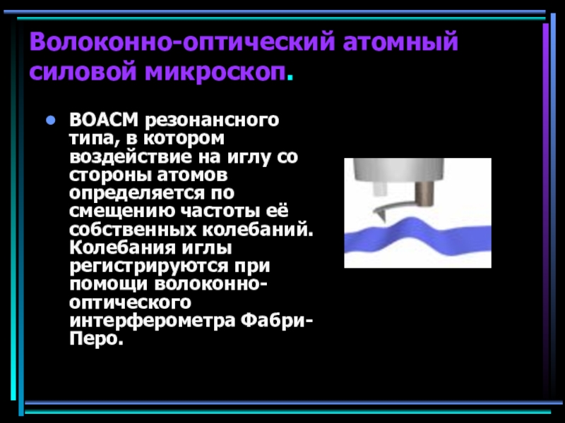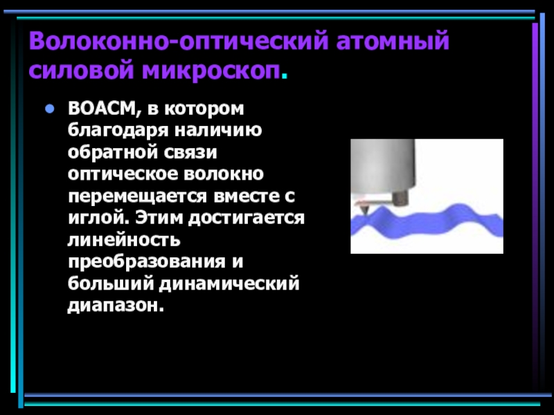 Волоконно-оптический атомный силовой микроскоп.ВОАСМ, в котором благодаря наличию обратной связи оптическое волокно перемещается вместе с иглой. Этим