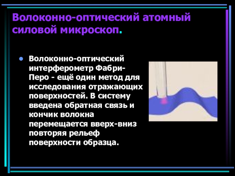 Волоконно-оптический атомный силовой микроскоп.Волоконно-оптический интерферометр Фабри-Перо - ещё один метод для исследования отражающих поверхностей. В систему введена