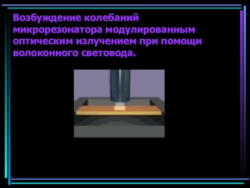 Слайд 17Возбуждение колебаний микрорезонатора модулированным оптическим излучением при помощи волоконного световода.