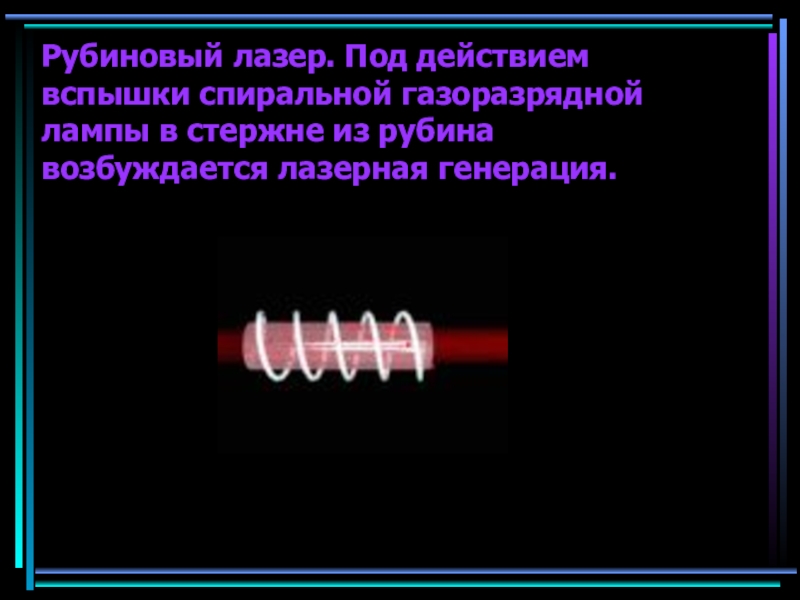 Слайд 19Рубиновый лазер. Под действием вспышки спиральной газоразрядной лампы в стержне из