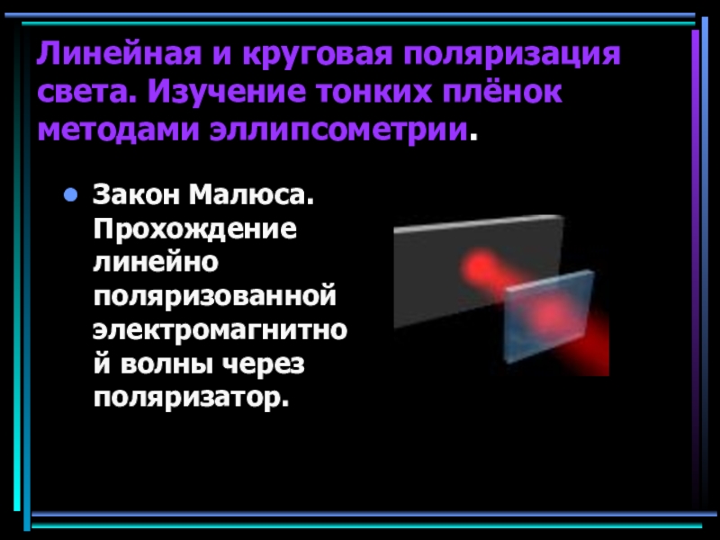 Линейная и круговая поляризация света. Изучение тонких плёнок методами эллипсометрии.Закон Малюса. Прохождение линейно поляризованной электромагнитной волны через