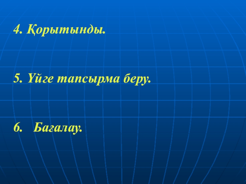 4. Қорытынды.5. Үйге тапсырма беру.6.  Бағалау.
