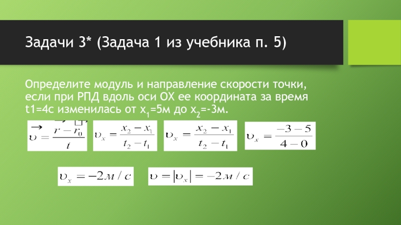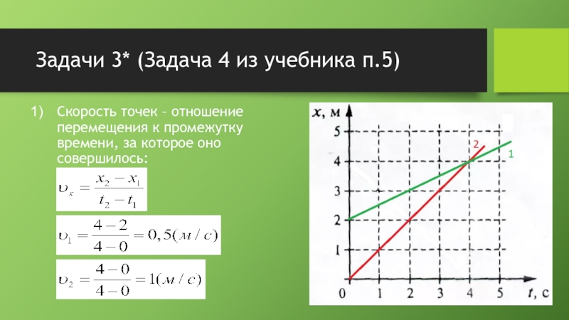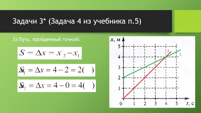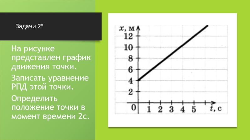 2. На рисунке представлен график движения точки. Записать уравнение РПД этой точки. Определить положение точки в момент времени 1с.