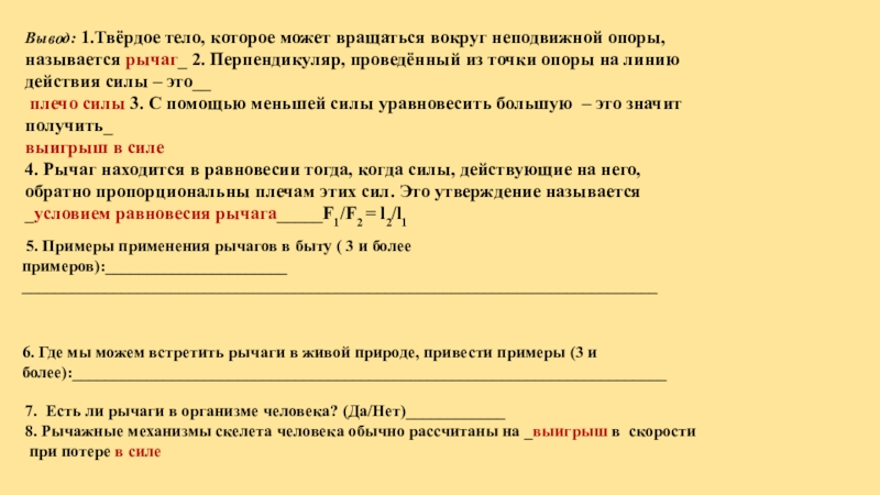 6. Где мы можем встретить рычаги в живой природе, привести примеры (3 и более):________________________________________________________________________