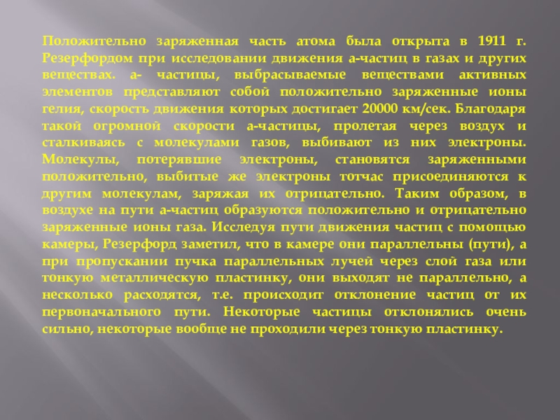 Слайд 15Положительно заряженная часть атома была открыта в 1911 г. Резерфордом при