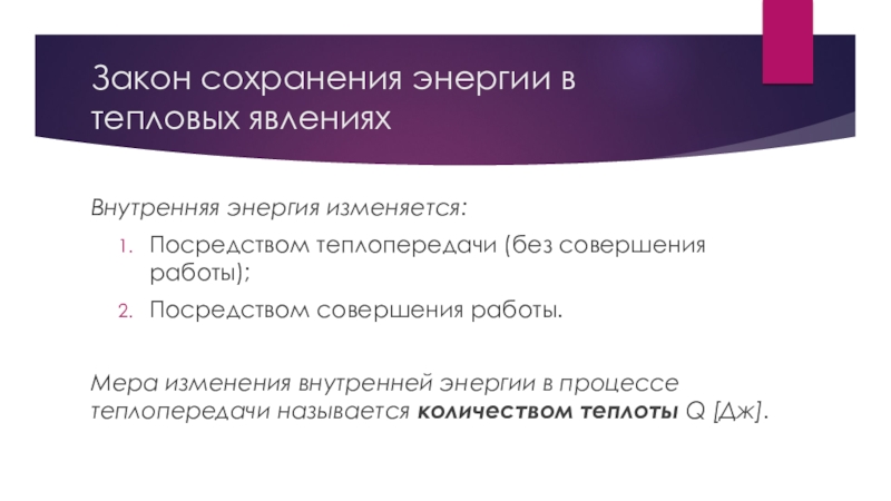 Слайд 7Закон сохранения энергии в тепловых явлениях