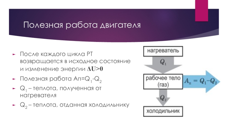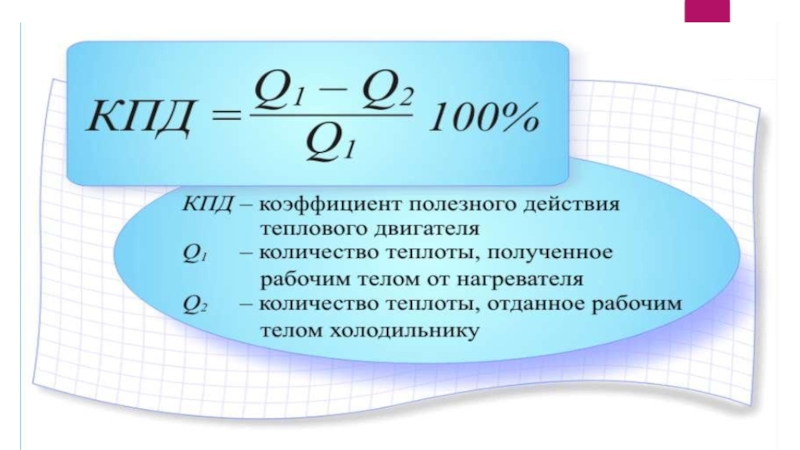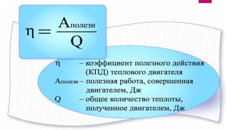 полезной работы Ап, совершенной двигателем, к количеству теплоты Q1, полученному от нагревателя и выраженному в процентах.