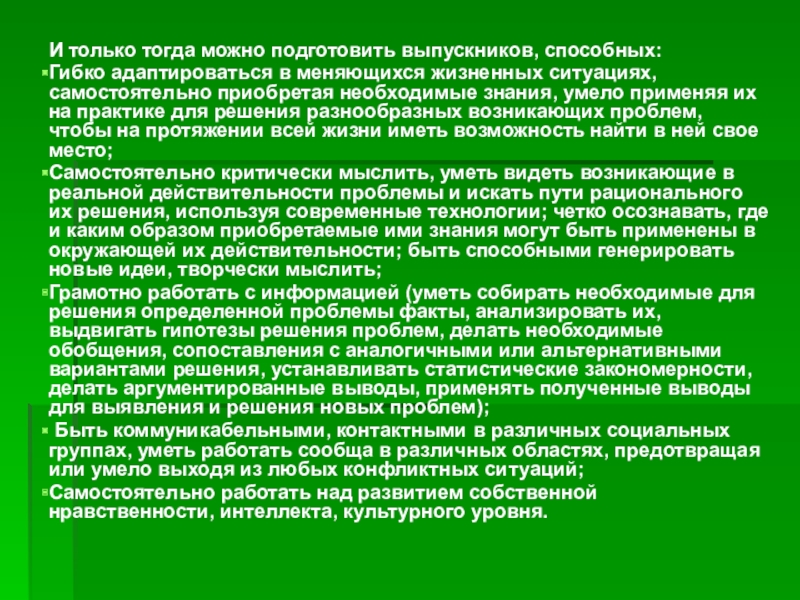 Слайд 4И только тогда можно подготовить выпускников, способных: