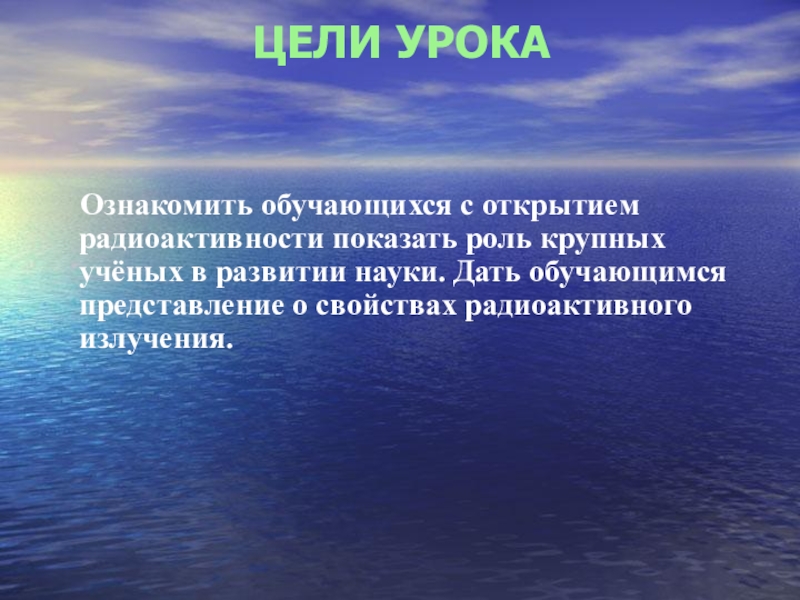 Ознакомить обучающихся с открытием радиоактивности показать