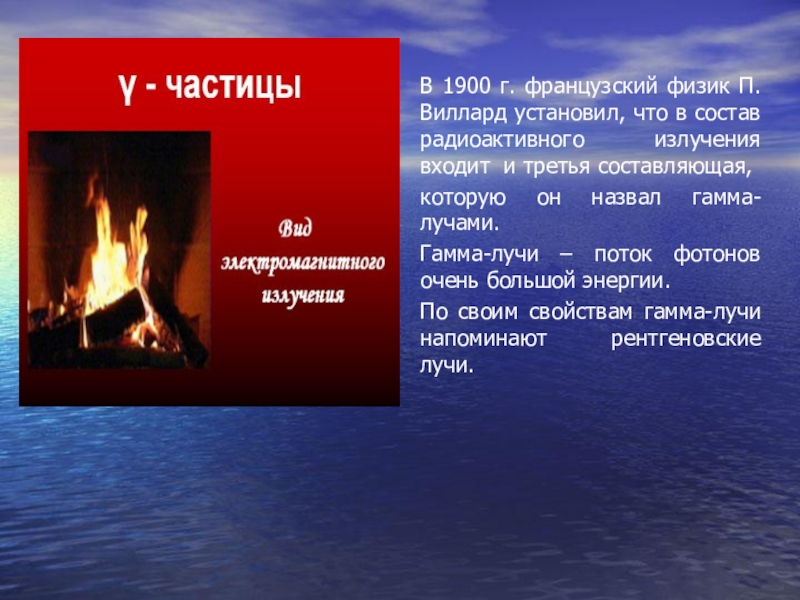 В 1900 г. П. Виклард открыл гамма-лучи – нейтральное излучение, где масса покоя равна нулю.