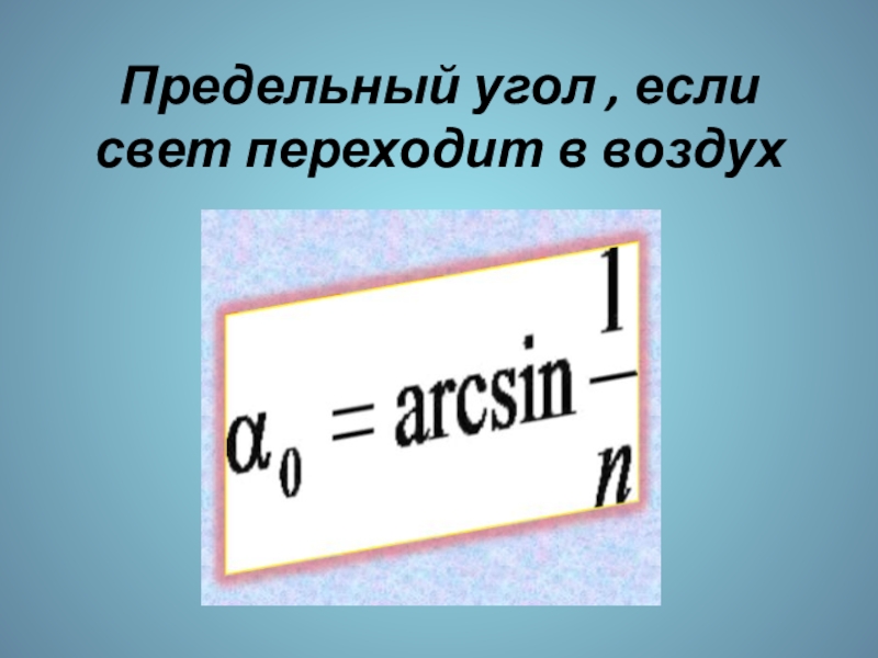 Слайд 4Предельный угол , если свет переходит в воздух