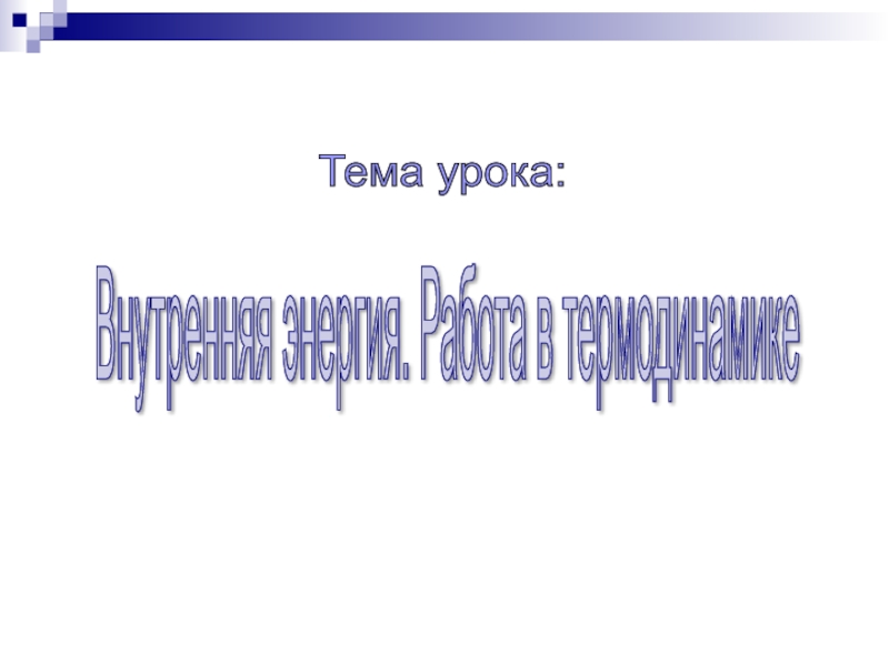 Тема урока: Внутренняя энергия. Работа в термодинамике