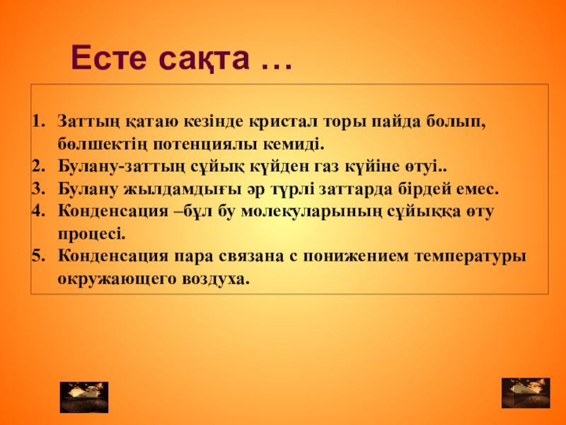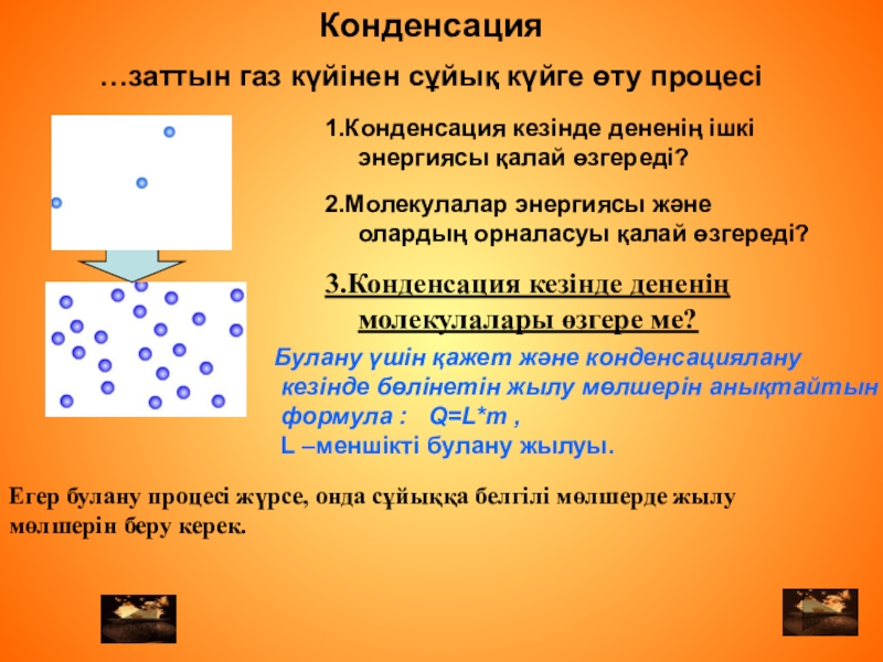 3.Конденсация кезінде дененің молекулалары өзгере ме?