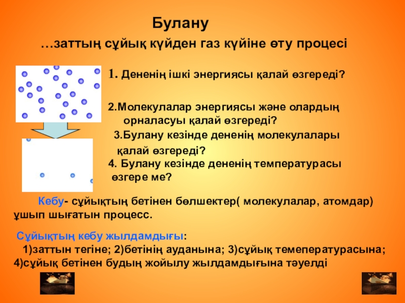Кебу- сұйықтың бетінен бөлшектер( молекулалар, атомдар) ұшып шығатын процесс.