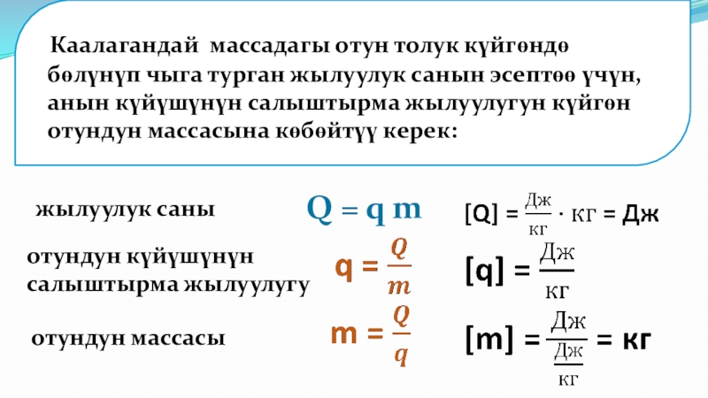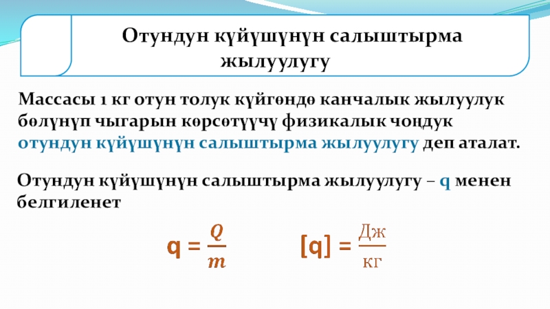 Отундун күйүшүнүн салыштырма жылуулугу – q менен